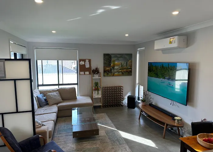 Set approximately a 10-minute drive from Hoxton Park Anglican Church, the 12 m² Delightful Austral Stay With Ac And Built-In Wardrobe comprises a patio and a balcony overlooking the garden. This 1-bedroom homestay also offers amenities like ironing facilities, a washing machine, ensuring guests have a comfortable stay.